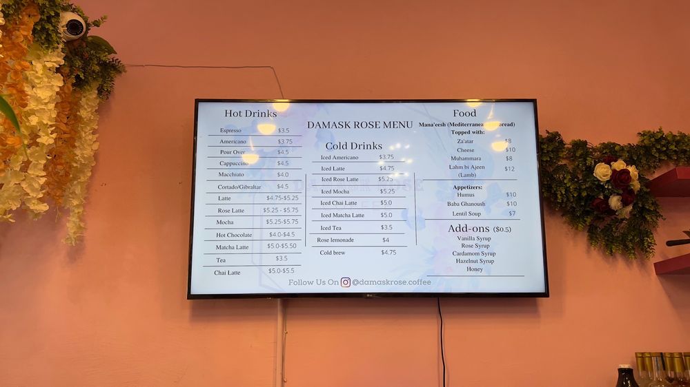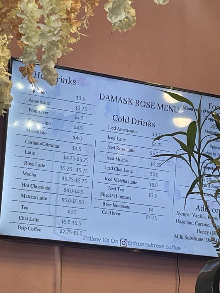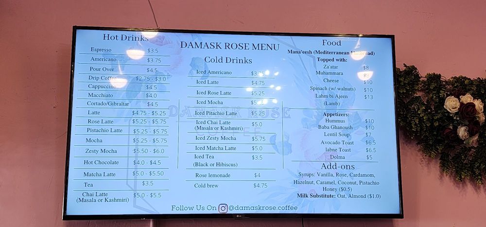On the food side, indulge in fresh, homemade delights like the flaky Baklava or the savory Flatbreads, made to order and customizable to your taste. Whether you're in for a quick snack or a leisurely meal, Damask Rose captures the essence of comfort food with a refined twist.